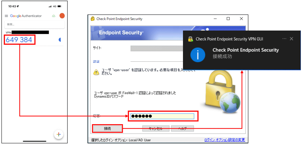 2要素認証を利用する場合も、VPN接続設定は通常と変わりません。