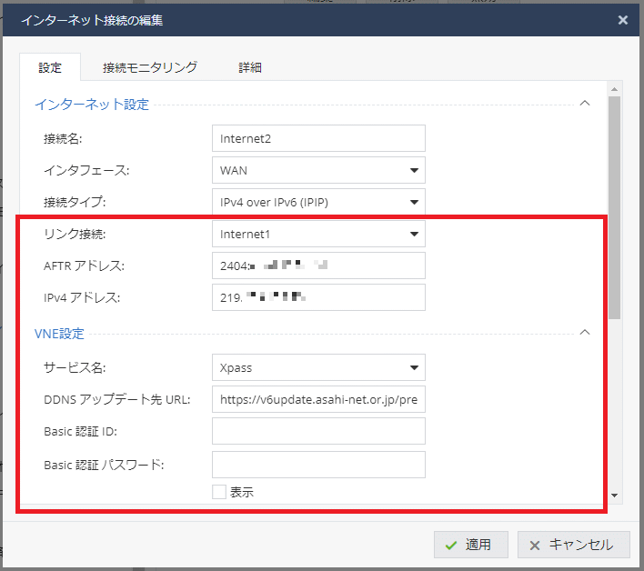 ※ DNSサーバー設定の入力は必要ありません