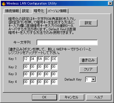 - 設定ユーティリティの [暗号化] − [Key1〜4] に任意の16進数10桁を入力します。