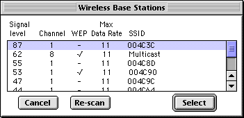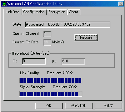 - 「Rescan」をしても表示されない場合は、ESS-IDかWEPの設定がRT60wと同じ設定になっているか確認してください。