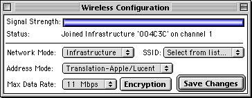 - 設定ユーティリティの「Encryption」ボタンを押すと、「Wireless Encryption」ウィンドウが現れます。