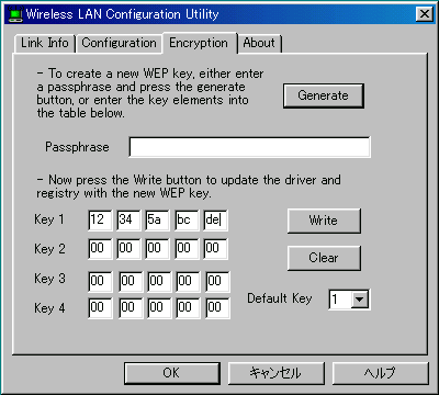 - 設定ユーティリティの [Encryption] − [Key1〜4] に任意の16進数10桁を入力します。
