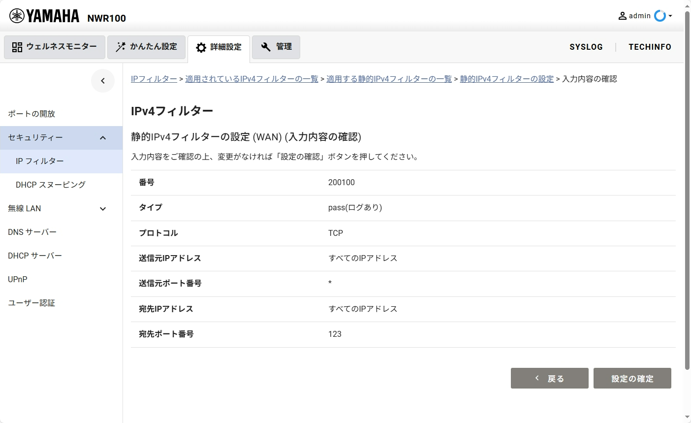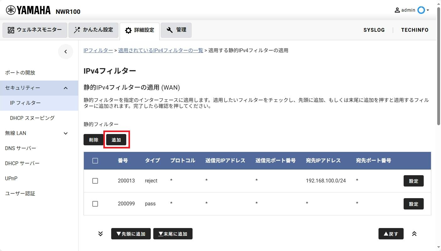 7. Web GUIによるIPフィルターの設定方法
