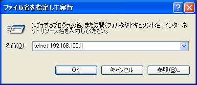 「telnet 192.168.100.1」と入力してから、[OK]をクリックします。