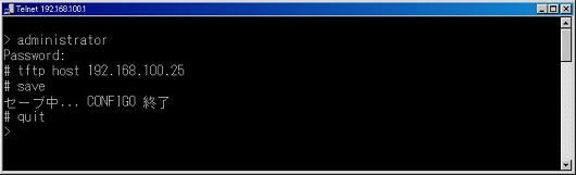 TFTP により設定ファイルをやりとりするためには、ヤマハルーター 側にあらかじめアクセス許可するための設定が必要です。まずtftp host コマンドを使用し、本機にアクセスできるホストを設定します。工場出荷設定ではどのホストからもアクセスできない設定になっていることに注意してください。