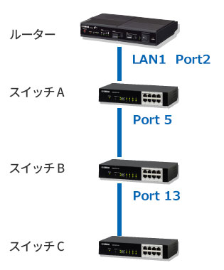 上図のような構成でスイッチ C を指定する場合の表記は "lan1:2-5-13" となります。