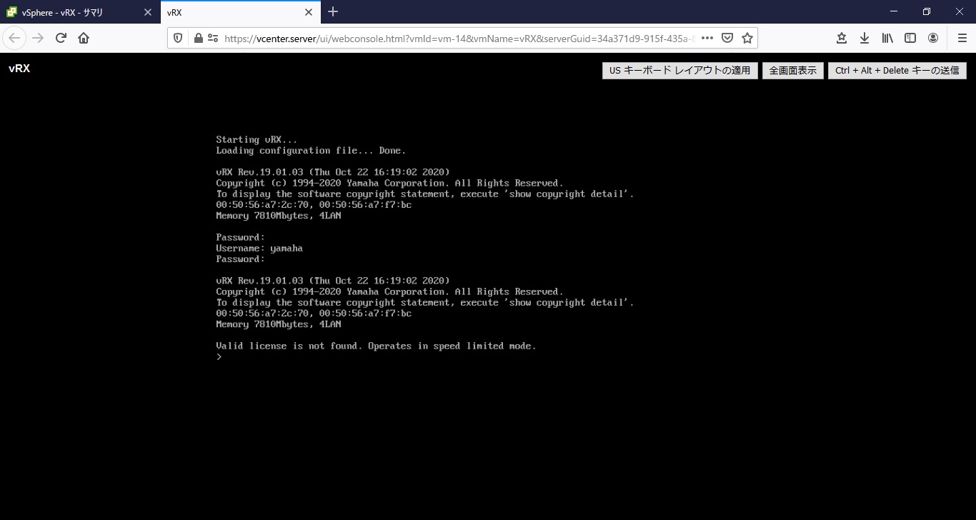 仮想マシンコンソールは vRX Amazon EC2 版 を除く vRX シリーズ で使用できます。ここでは、vRX VMware ESXi 版 における設定手順の一例を説明します。