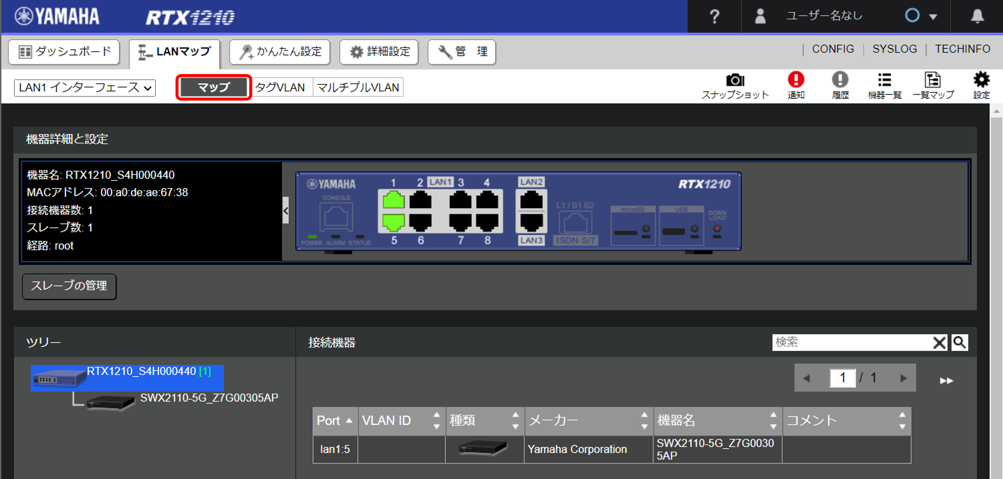 - L2MSマネージャーのWeb GUIにアクセスし、「LANマップ」ページを開きます。