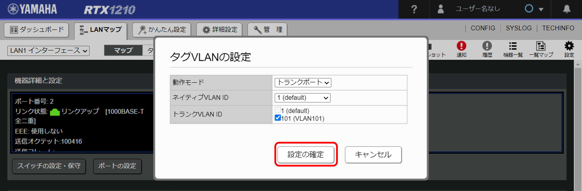 タグVLANの一括設定はヤマハルーターもしくはヤマハスイッチの「LANマップ」から設定することができます。「Yamaha LAN Monitor」はタグVLANの一括設定に対応していないためご注意ください。