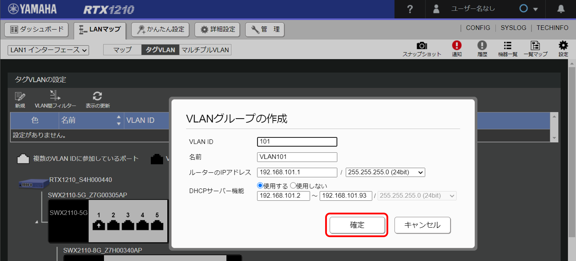 「Yamaha LAN Monitor」を使用する場合、VLANの作成方法が異なります。設定方法は「Yamaha LAN Monitor」のマニュアルをご参照ください。