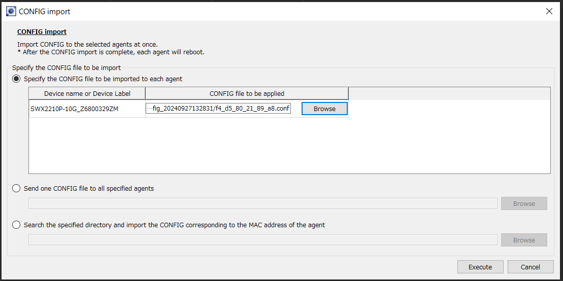 Yamaha LAN Monitorは、設定ファイル(CONFIGファイル)を複数のヤマハスイッチに一括配布することができます。