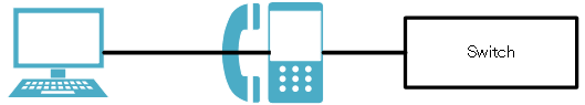 スイッチとIP電話、IP電話とPCを接続することで、スイッチの1ポートでIP電話の音声トラフィックとPCのデータトラフィックを扱うことが可能になります。