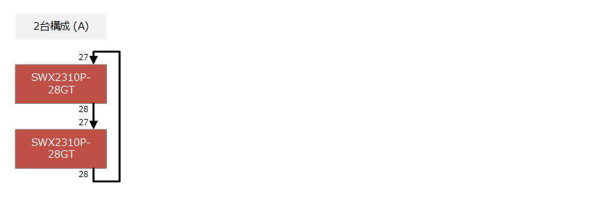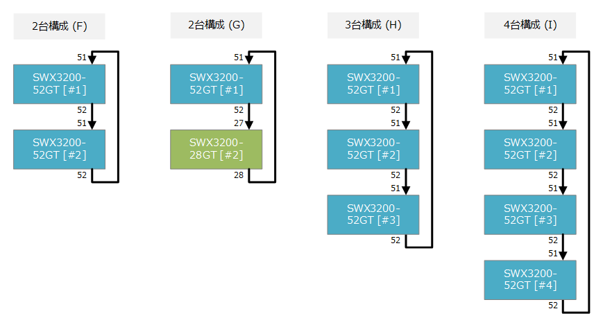接続するスタックポートは、メンバースイッチの 若番 (Lower number) ポートと 老番 (Higher number) ポート を接続します。