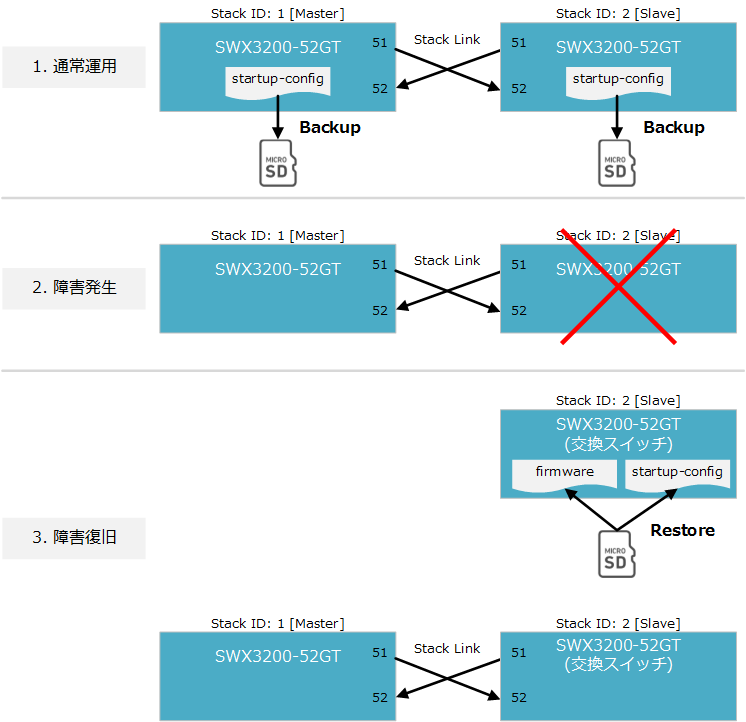 SDカードを使ったバックアップ/リストアによってメンバースイッチの交換を行います。